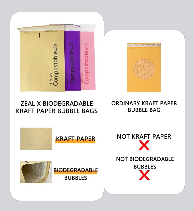 ایک پیشہ ور پیپر بیگ تیار کرنے والے کی حیثیت سے ، زیل ایکس مکمل طور پر حسب ضرورت بائیوڈیگریڈ ایبل کرافٹ پیپر بلبلا میلرز پیش کرتا ہے ، جس میں کسٹم سائز ، لوگو پرنٹنگ ، اور کاغذی وزن کے اختیارات شامل ہیں۔ یہ کمپوسٹ ایبل میلرز 100 bi بائیوڈیگریڈیبل ، غیر زہریلا ، اور آلودگی سے پاک ہیں ، جو انہیں پائیدار پیکیجنگ کی حکمت عملیوں کے لئے مثالی بناتے ہیں۔ آنسو کی مضبوط مزاحمت ، ہلکا پھلکا ڈیزائن ، اور ایکسپریس ڈلیوری کے لئے قابل اعتماد تحفظ کے ساتھ ، ہمارے کرافٹ پیپر بلبل میلرز کو عالمی ای کامرس بیچنے والے ماحول دوست ، پلاسٹک سے پاک شپنگ حل کی تلاش میں بھروسہ کرتے ہیں۔