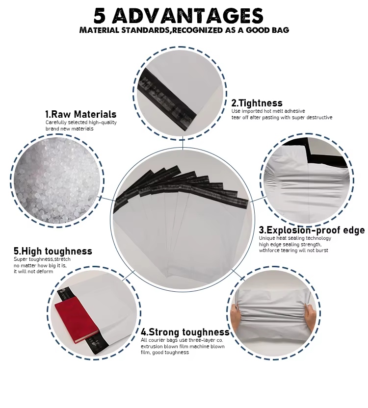 The پیئ پولی میلرزیل ایکس کے ذریعہ اعلی معیار کی ری سائیکل لائق پولی تھیلین (پیئ) مادے سے بنایا گیا ہے جو غیر زہریلا ، بدبو کے بغیر اور واٹر پروف ہے۔ ہر بیگ کو کچرے کو کم سے کم کرتے ہوئے راہداری کے دوران مصنوعات کی حفاظت کے لئے احتیاط سے ڈیزائن کیا گیا ہے۔ اس کا آنسو مزاحم اور نمی پروف ڈھانچہ آپ کے سامان کو محفوظ اور پیشہ ورانہ طور پر پہنچنے کو یقینی بناتا ہے۔ یہ لباس کے برانڈز ، آن لائن خوردہ فروشوں اور دنیا بھر میں لاجسٹک کمپنیوں کے لئے پیکیجنگ کا ایک مثالی انتخاب بناتا ہے۔