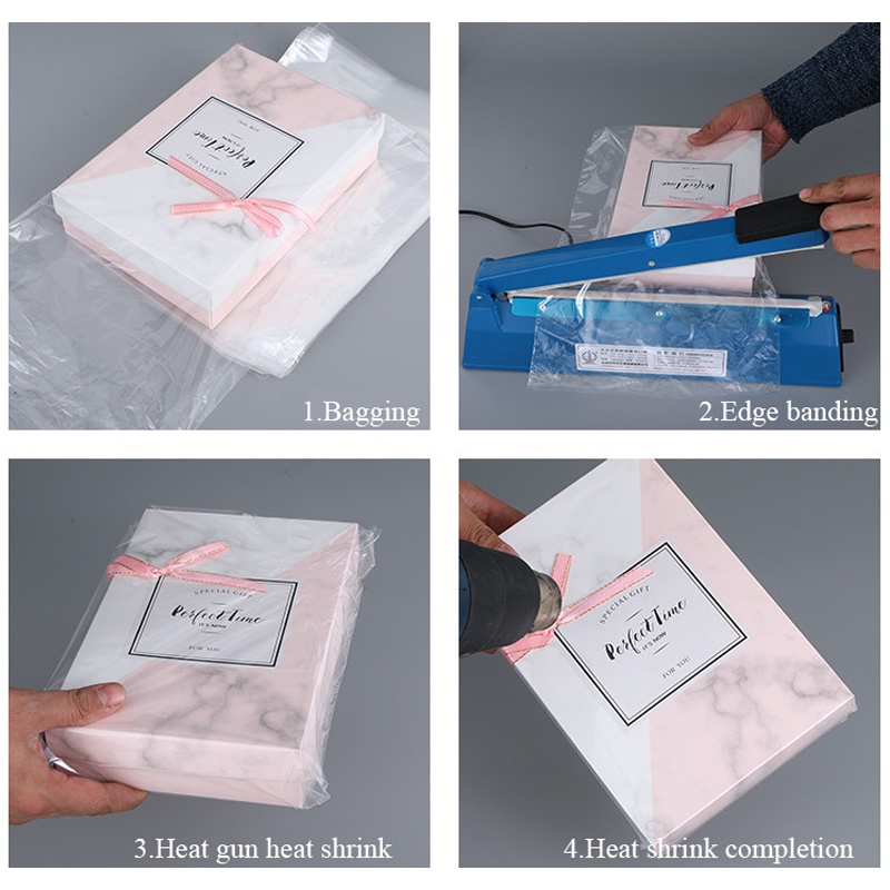 ایپلی کیشن : سکڑ فلم رول پیکیجنگ لباس ، بستر ، گرمی سکڑنے والی پہیلیاں ، اسٹیشنری ، کتابیں ، تصویر کے فریم ، سپلائی بنانے ، غسل خانہ ، تیل کی بوتلیں ، سی ڈی ڈی وی ڈی کیسز ، تحائف ، موم بتیاں ، کاسمیٹکس ، جوتے ، شراب کی بوتلیں ، چھوٹی تحفہ کی ٹوکری ، DIY دستکاری۔